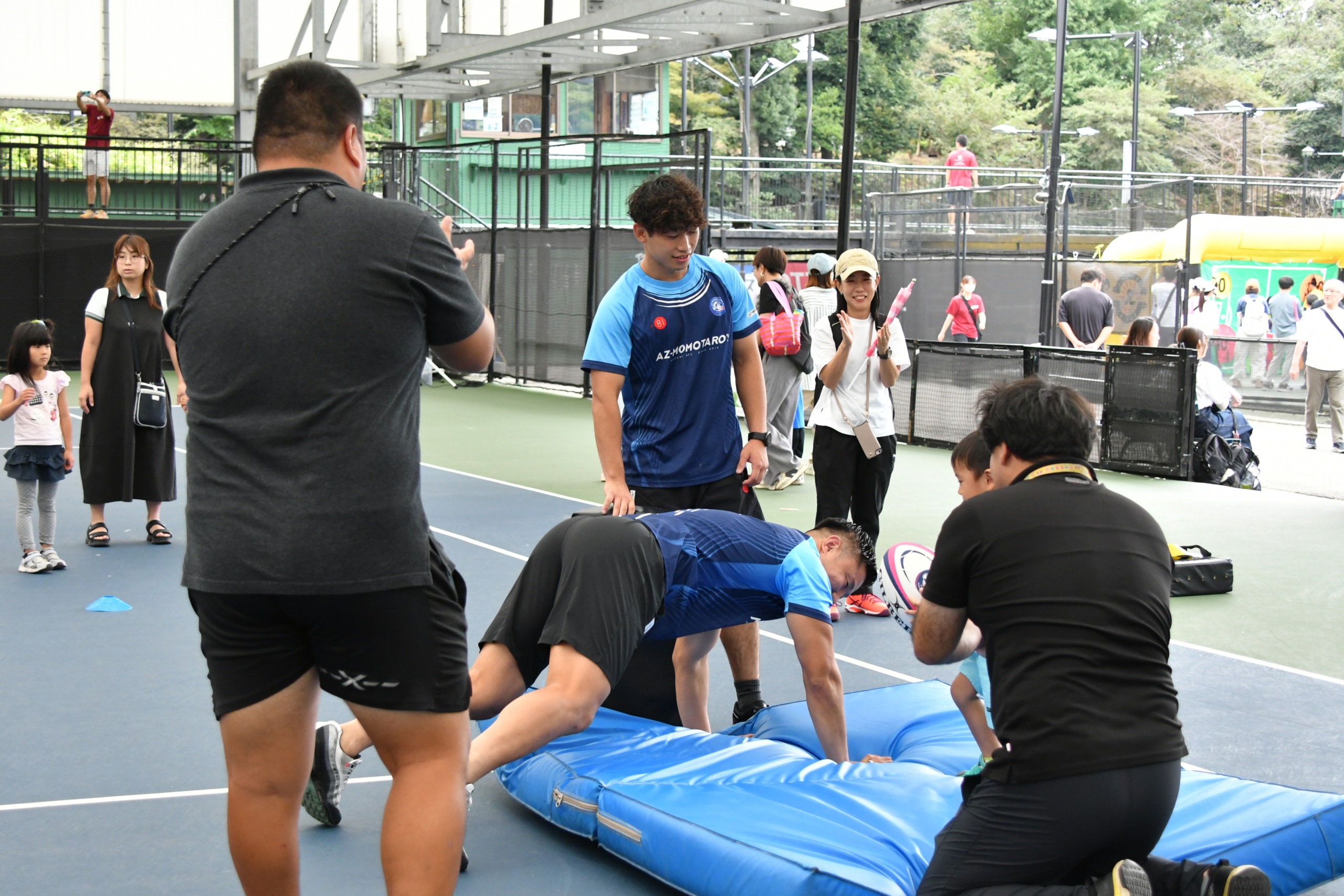 ラグビー体験ブースがスタート!