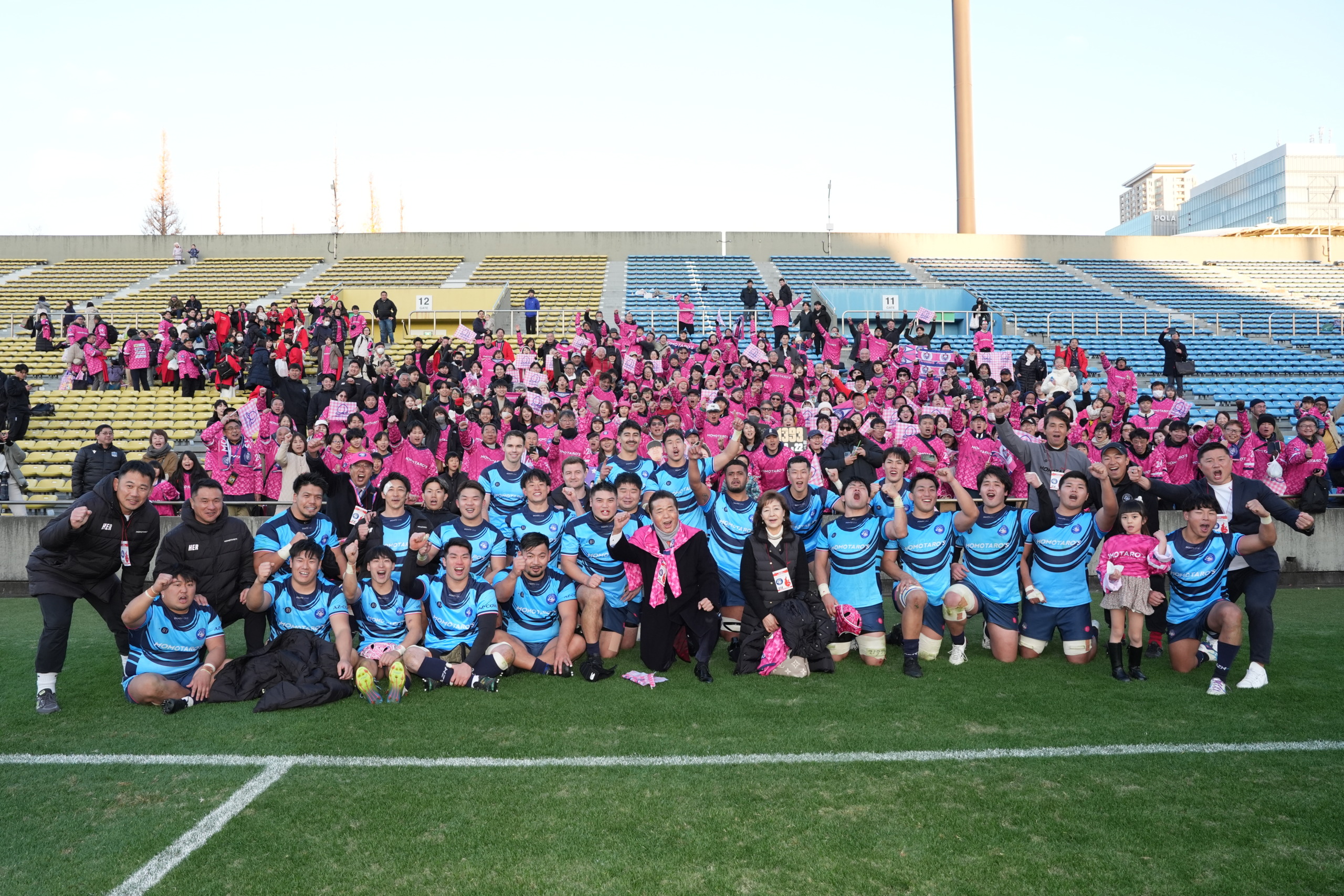 試合前も、試合中もノーサイド後も、MOMOTARO’Sのファンは楽しそうだった。選手たちはその応援に力をもらい、関東、関西、九州の上位3チームずつが出場して戦う全国社会人ラグビーフットボールトーナメント大会(1月24日、25日まで続く)を勝ち抜くエナジーを得た。